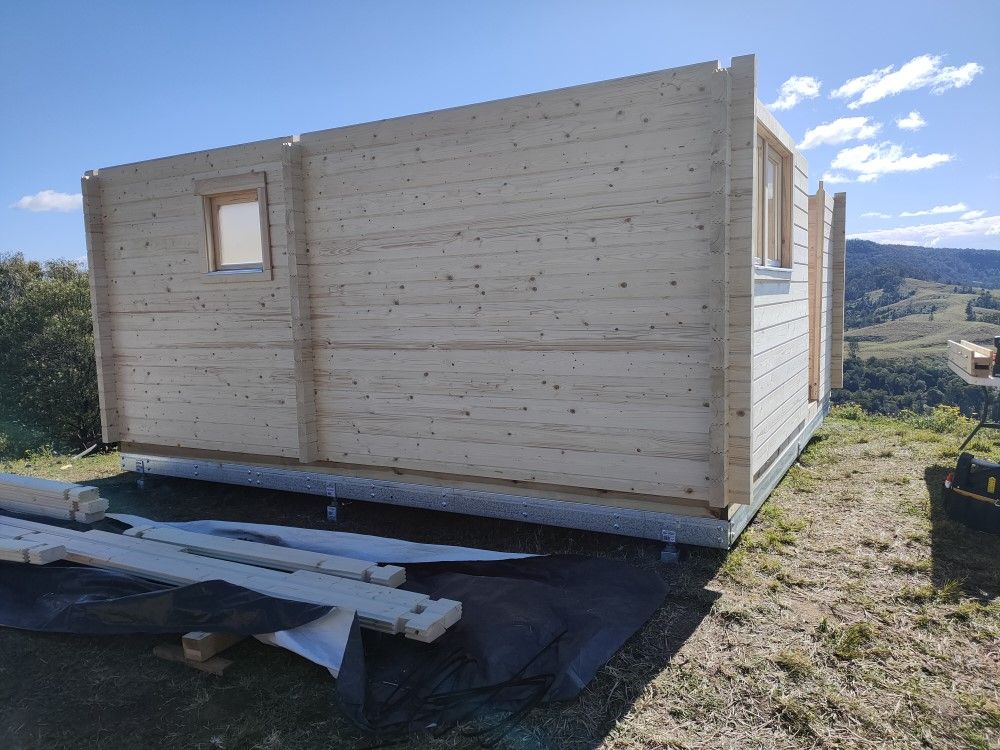 The site was on a ridge and therefore fully exposed to the elements, something we of course take into account when building the steel base foundation for this cabin.