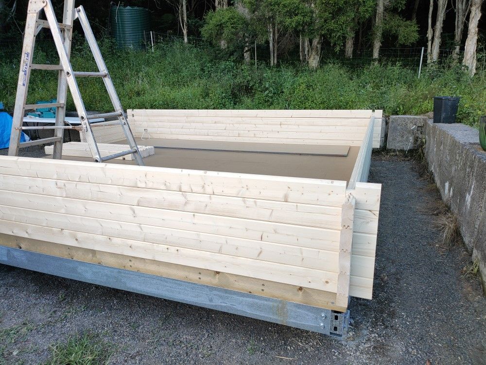 As is sometimes the case our DISPLAY CABIN at our site in Mullumbimby has recently been sold - it will go fully assembled to Tasmania in March 2023. The new proud owners Leanne and Tom kindly agreed to delay the delivery by a few weeks to enable us to build a new display log cabin. We decided to build one of our new 20sqm models called OSCAR20. The images below show how far we got - before we got rain interrupted on the 28th of December.