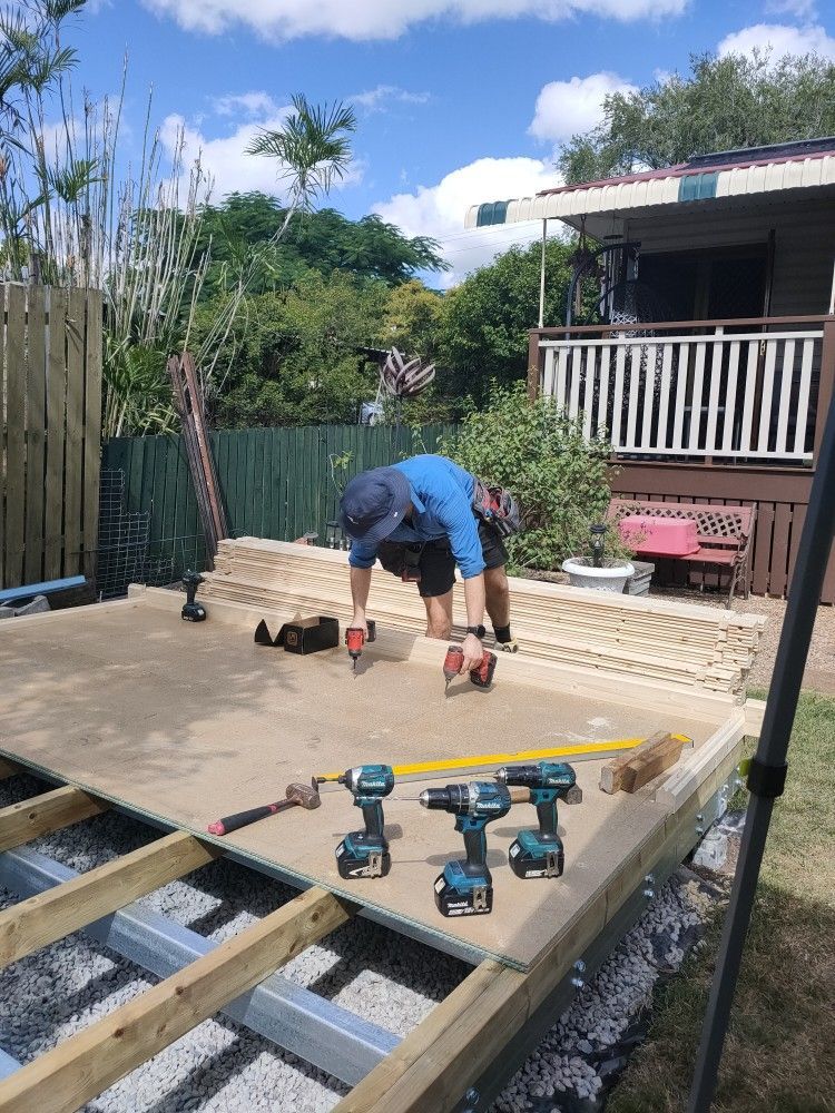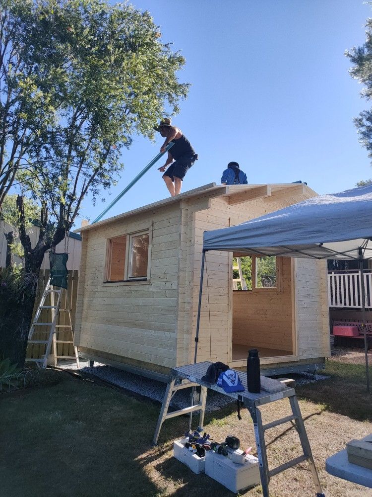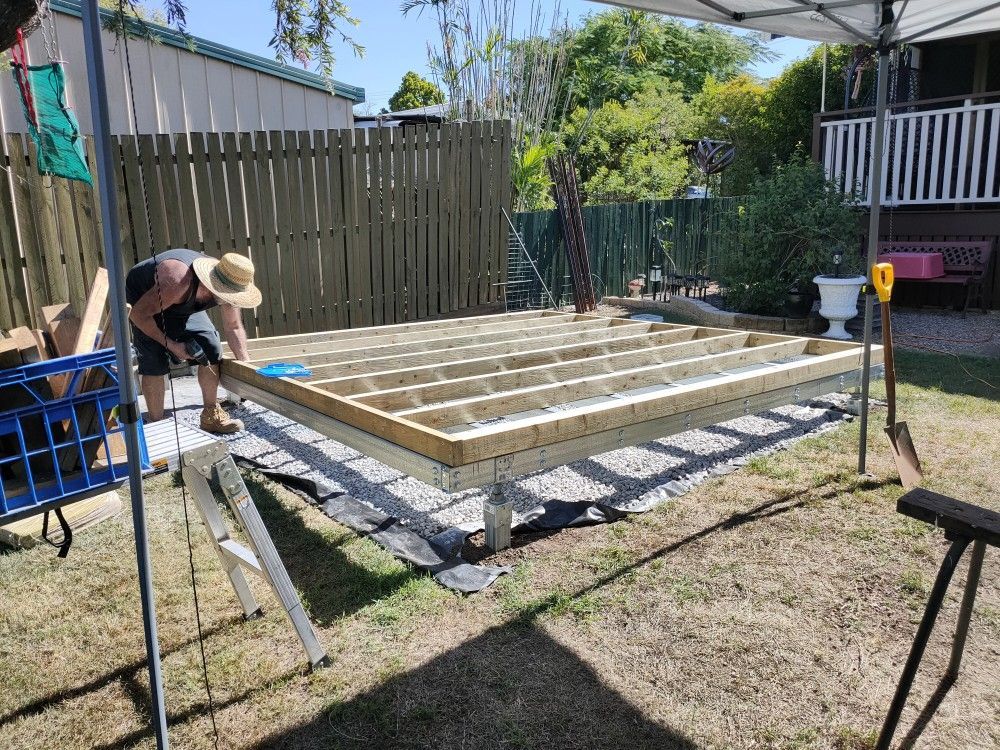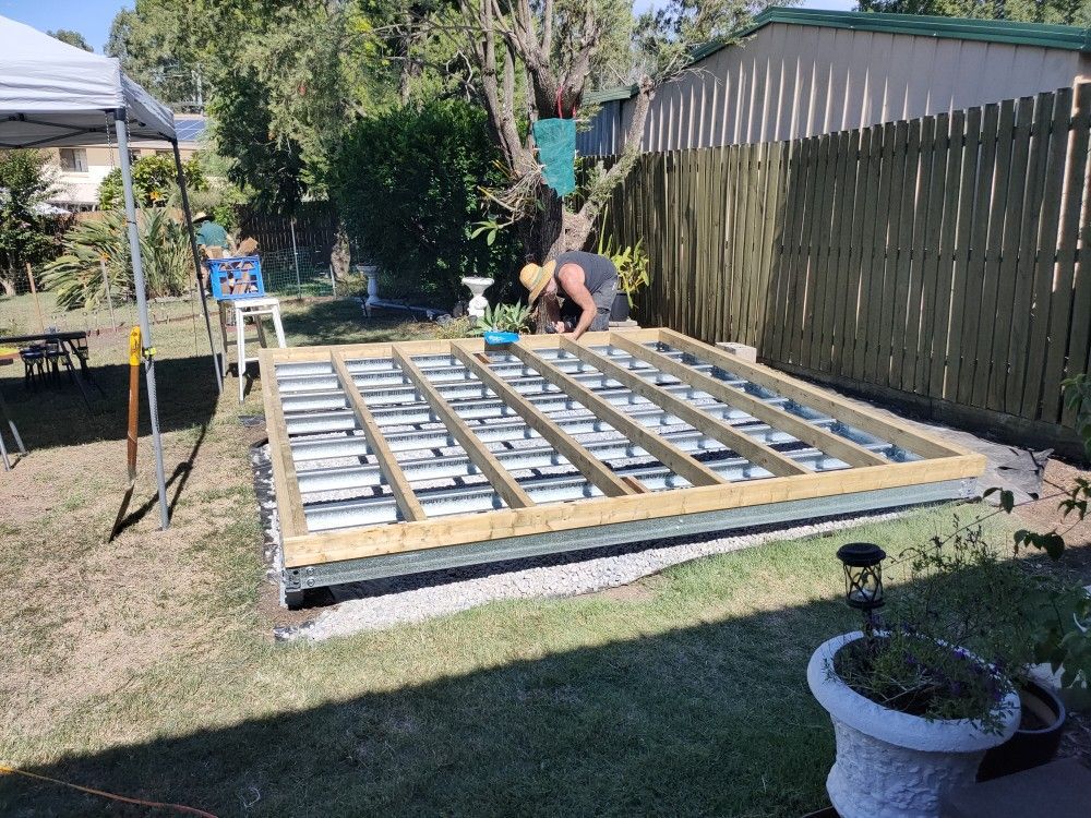We installed both the steel purlin base and the treated pine base on day one of the build.