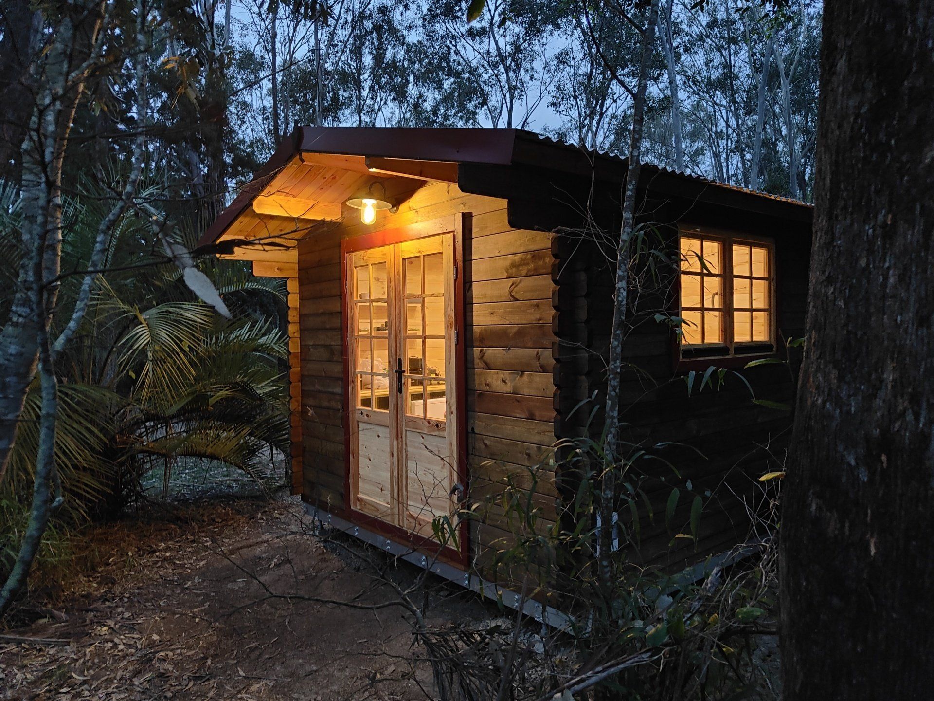 A properly lit log cabin at night excudes even more charm and a homely feel that is unsurpassed.