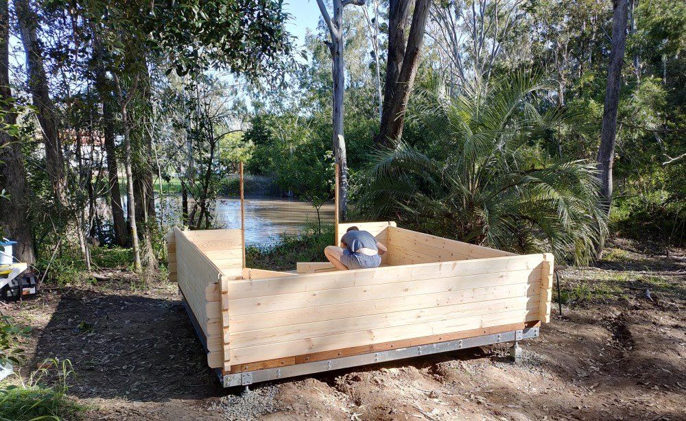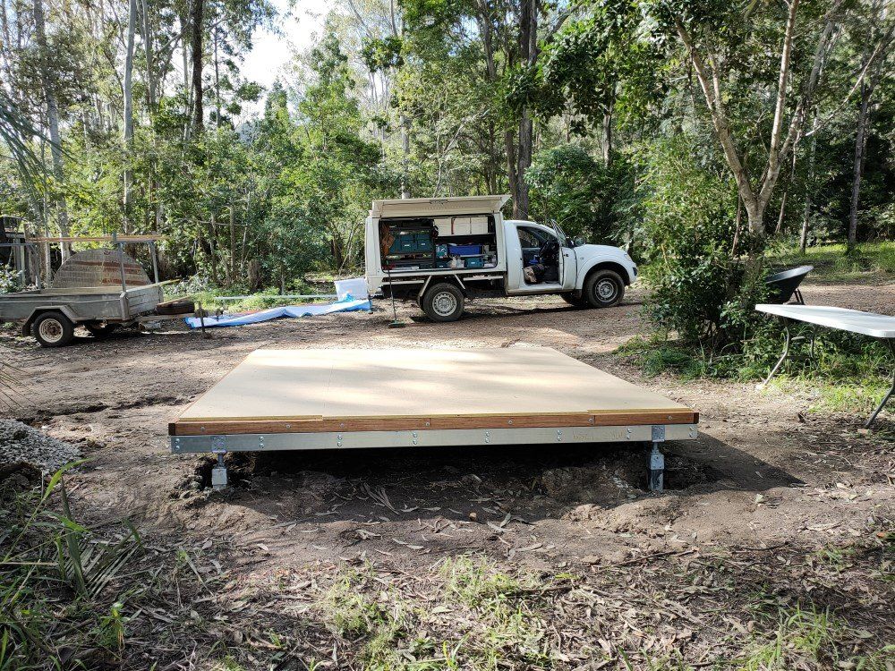 While the the most cost effective foundation is simply placing a treated pine or hardwood base frame on top of road base and pavers we do strongly recommend to consider a steel base frame to lift the cabin off the ground which is not only ideal for sloped sites, but also provides better termite protection.