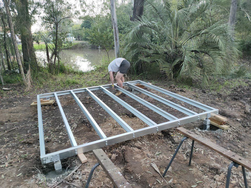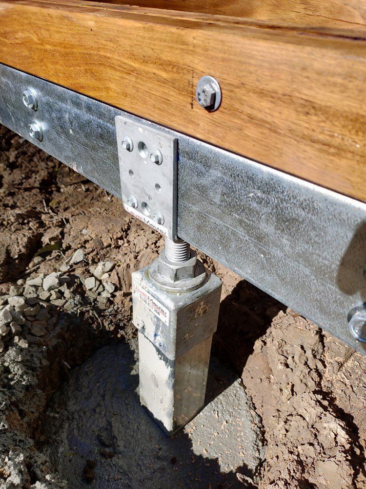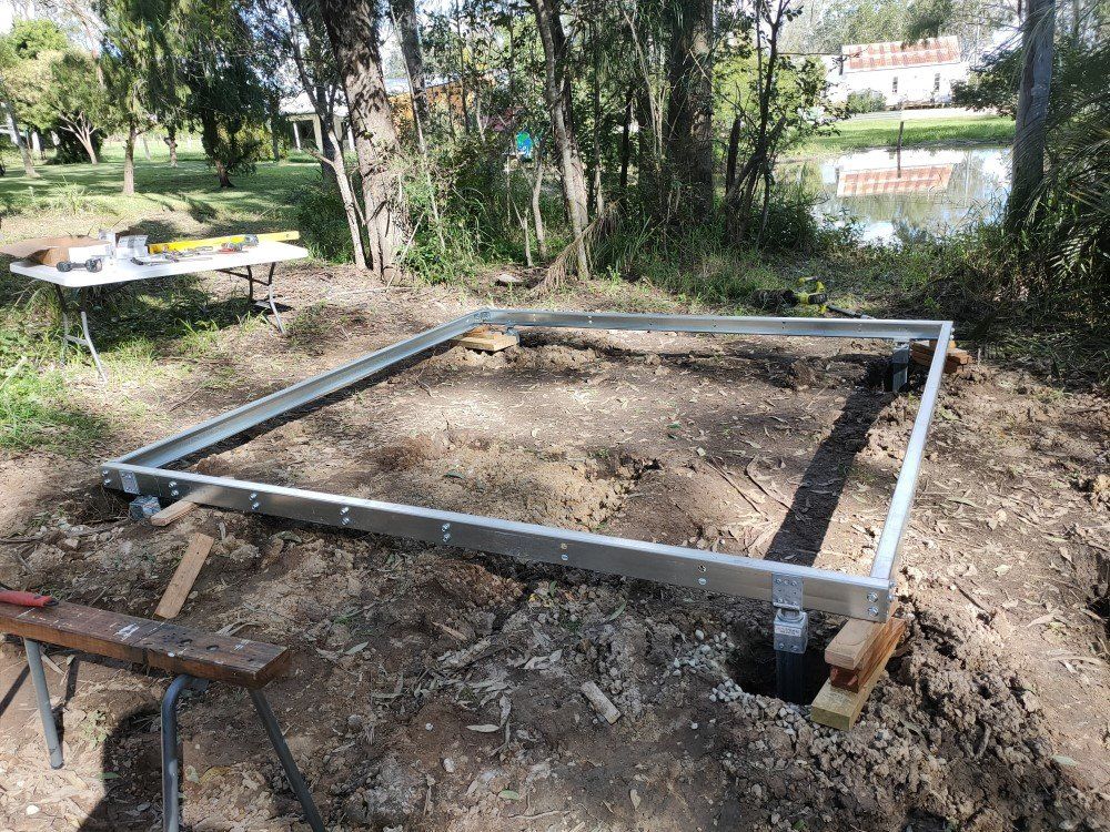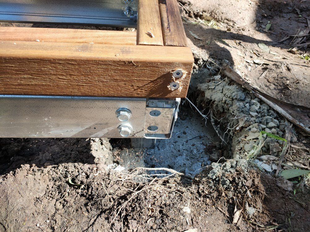 This allowed the concrete to dry overnight so we could make a fresh start next morning assembling the entire frame including the adjustable post shoes supplied by LEVELMASTER.com.au