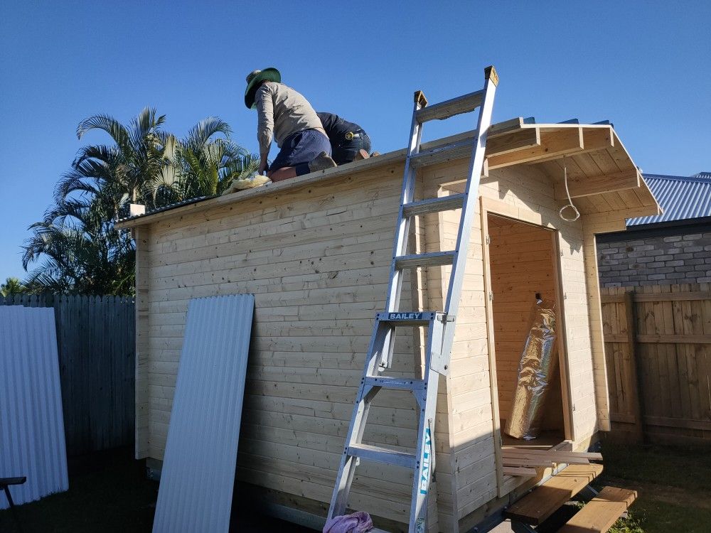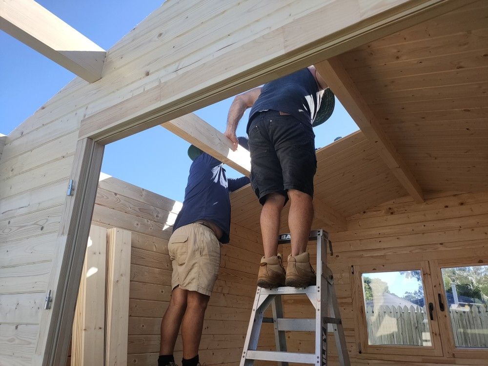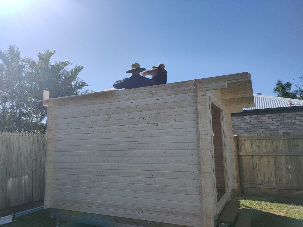 We opt screwing these boards down using galvanised outdoor screws of 45mm length, we do not use the chrome coated shiny nails often supplied with European made cabins. Our strong winds and tropical cyclones necessitate different construction methods than what is used overseas.