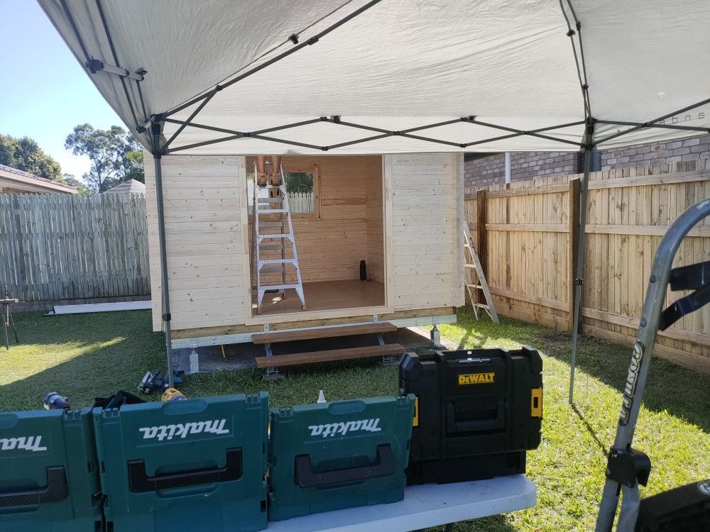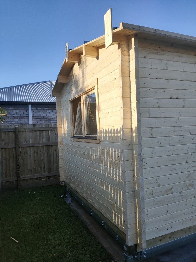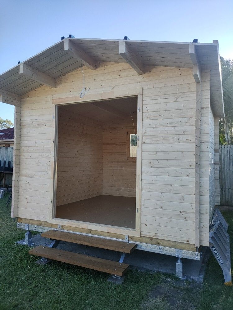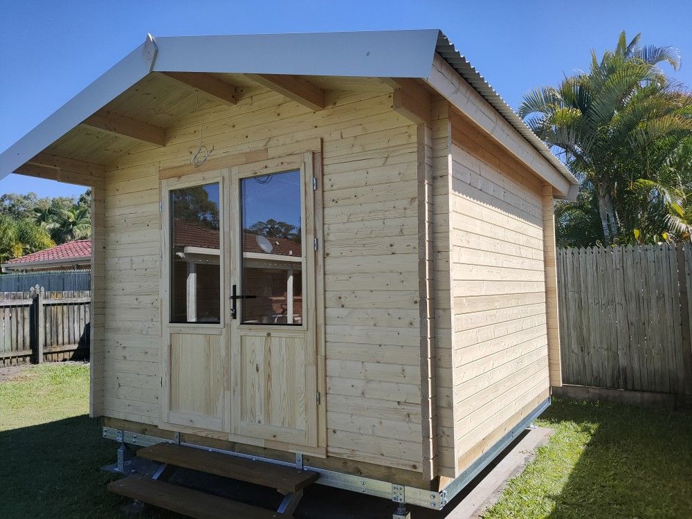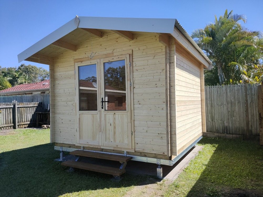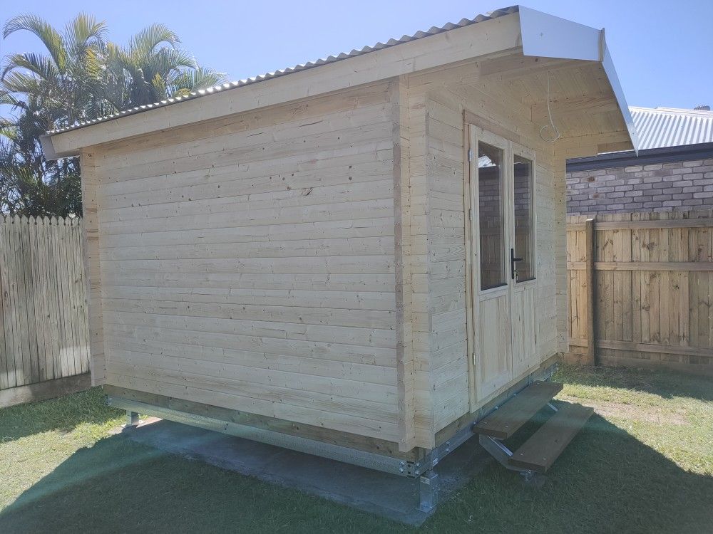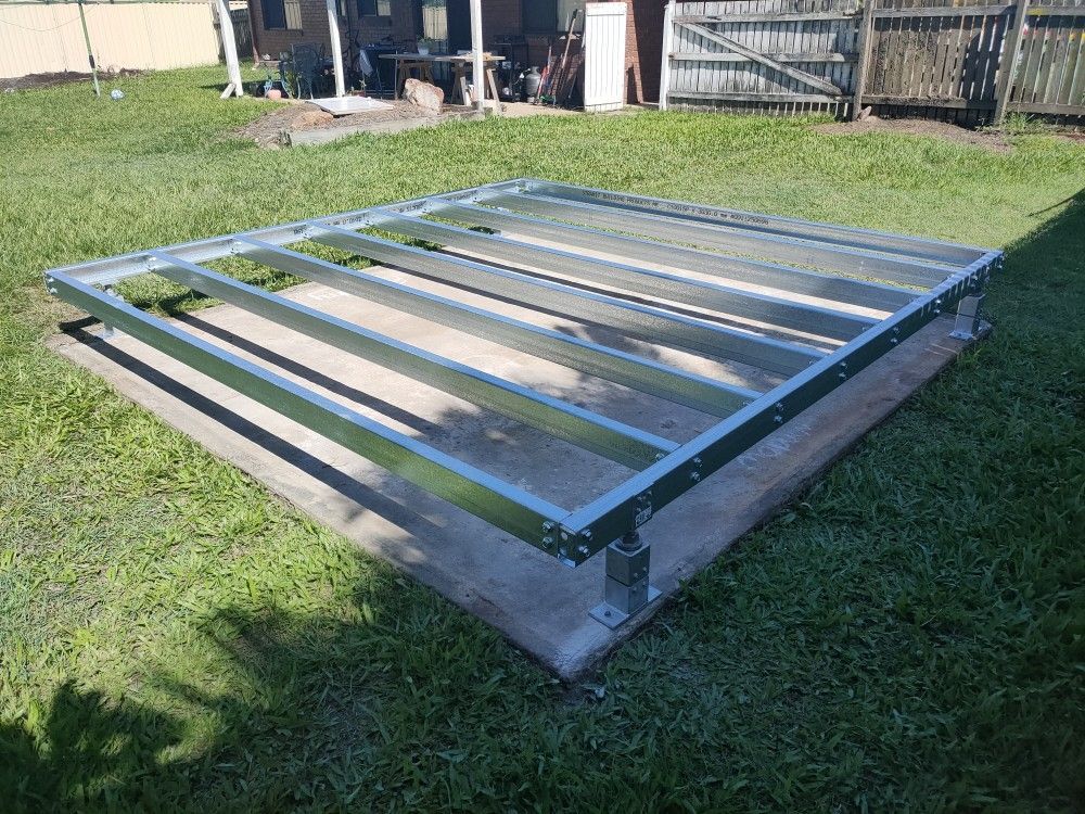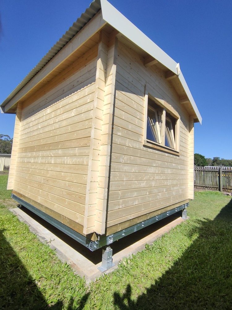 By pure coincidence, the old concrete slab at Eileen's place was the exact same size as the footprint of our "SAM10" cabin. Whilst this, in theory, meant that no additional foundation was needed, Eileen opted to raise her new office cabin off the ground by installing one of our popular steel purlin foundations. This eliminated any possible future flooding issues.