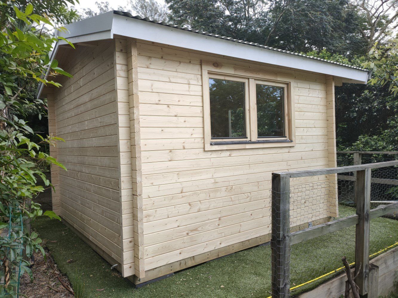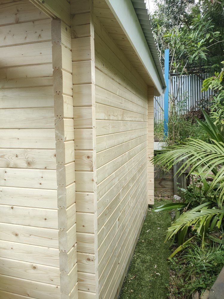 Joanna and Jason were facing a familar problem - Jason is working from home, and as the kids are getting older Jason's office currently occupying a bedroom within their house needed to be converted back into a kid's bedroom. Fortunately, they had a square levelled out area covered with artificial lawn, which was the ideal building spot for their new "SAM10" log cabin.