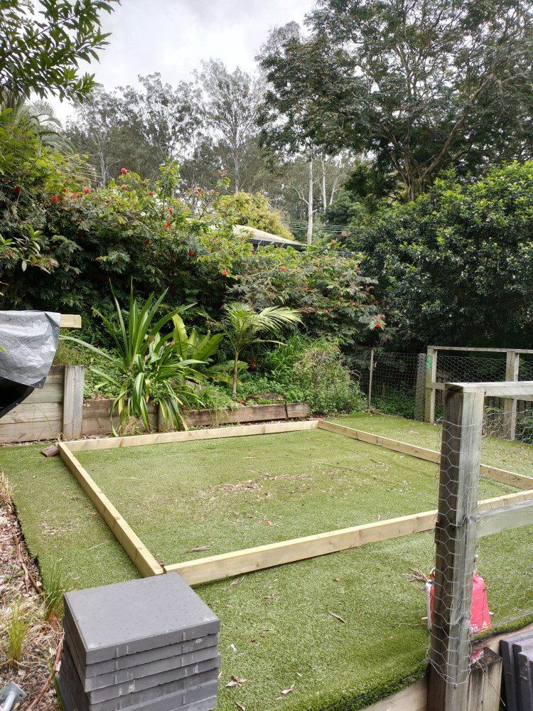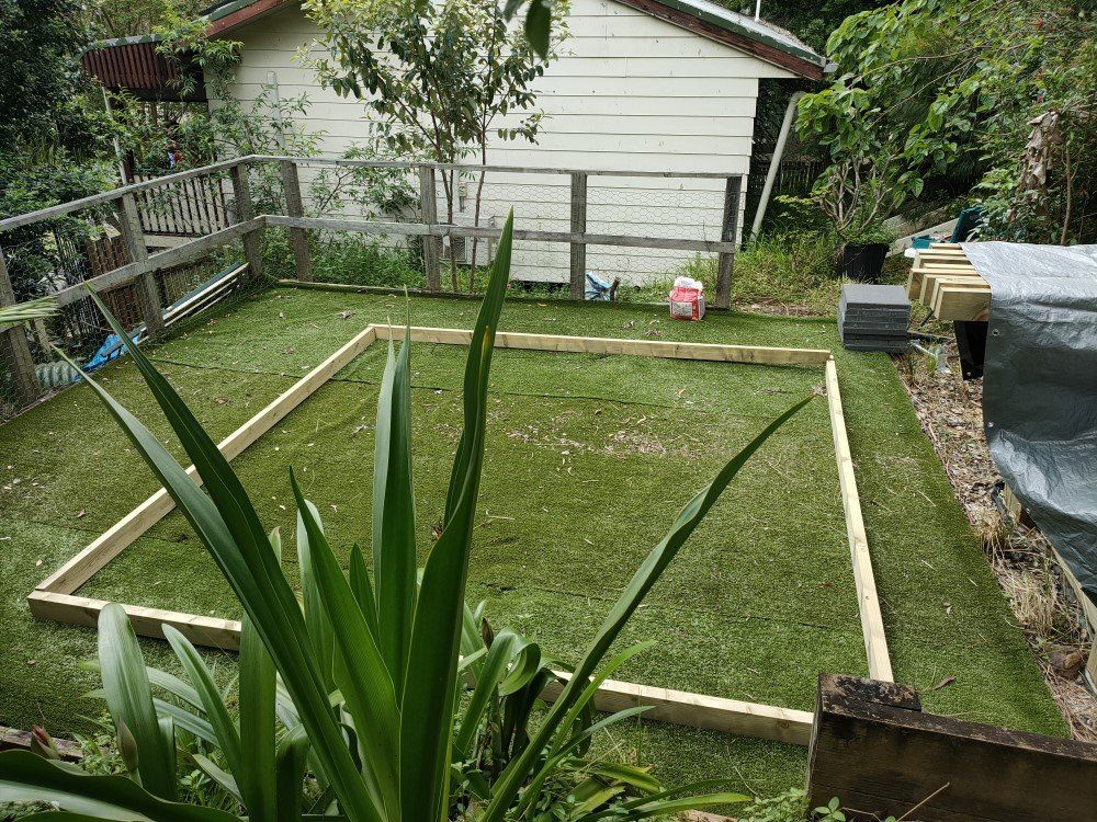 While the artificial lawn looks great and made for a very neat and clean building site, it proved to be impossible to level out the pavers initially placed on top of it.