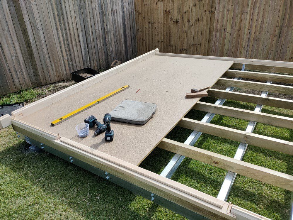 Stef and Jun's backyard had a bit of a slope in it, necessitating the use of a slightly raised steel base.