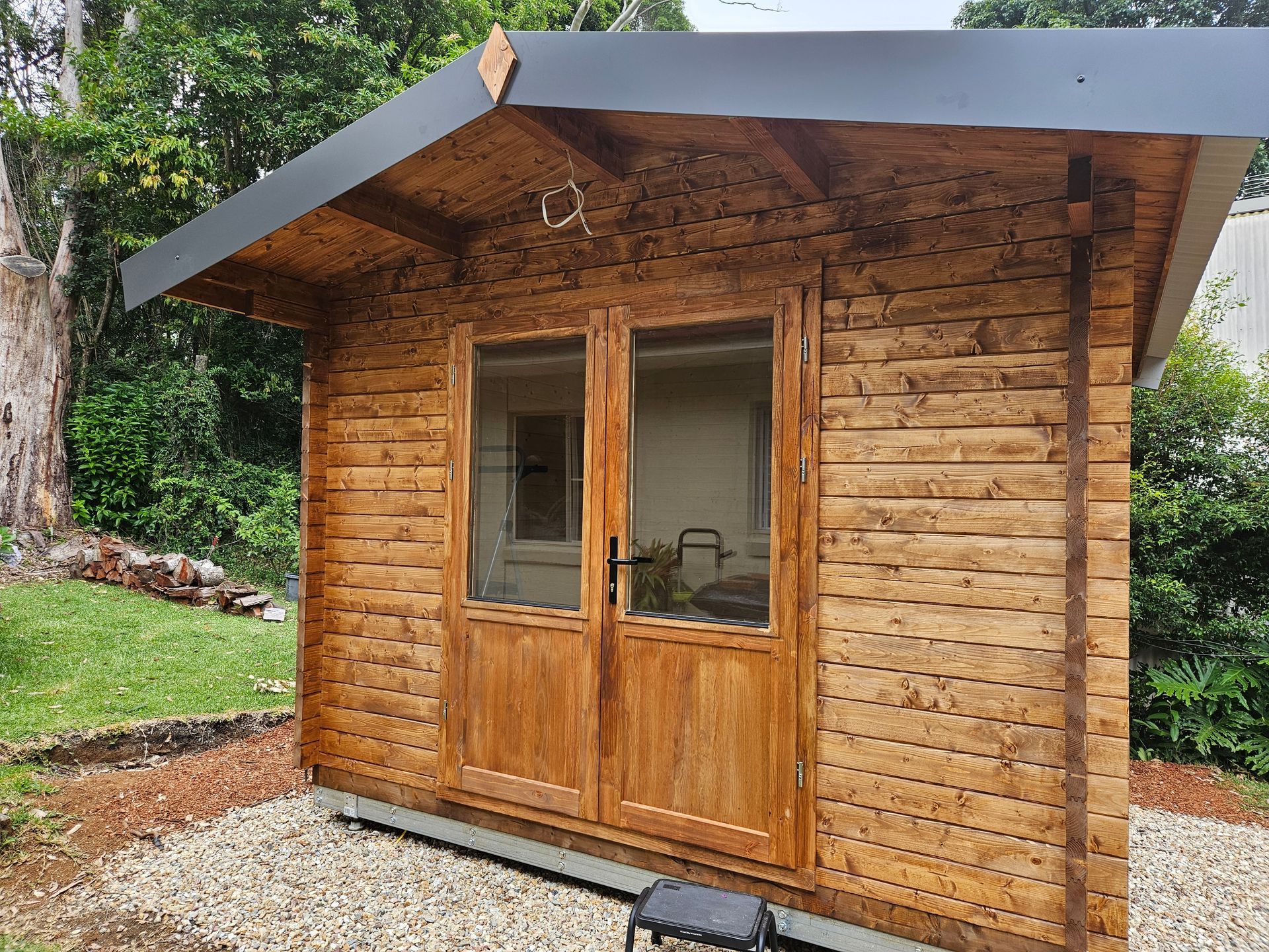 Finally - our first build for 2016! At the end of last year we took 2 months off, touring Europe and visiting our suppliers. Upon our return to Oz, we had the usual hot and wet Australian January weather. We normally do not schedule any builds while temperatures outside are frequently above 30 degrees, and always communicate this to our customers. However, sometimes we are asked to build a cabin even while the weather is not too favorable - like in this case in Springbrook, Qld. We were overall lucky, with overcast conditions for most of the build. So here is to another great cabin building year!