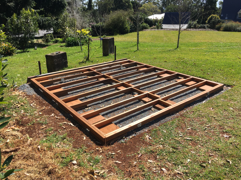 The internal frame timbers were then added, and additional pavers placed where needed, with centre and edge noggins finishing the base frame.