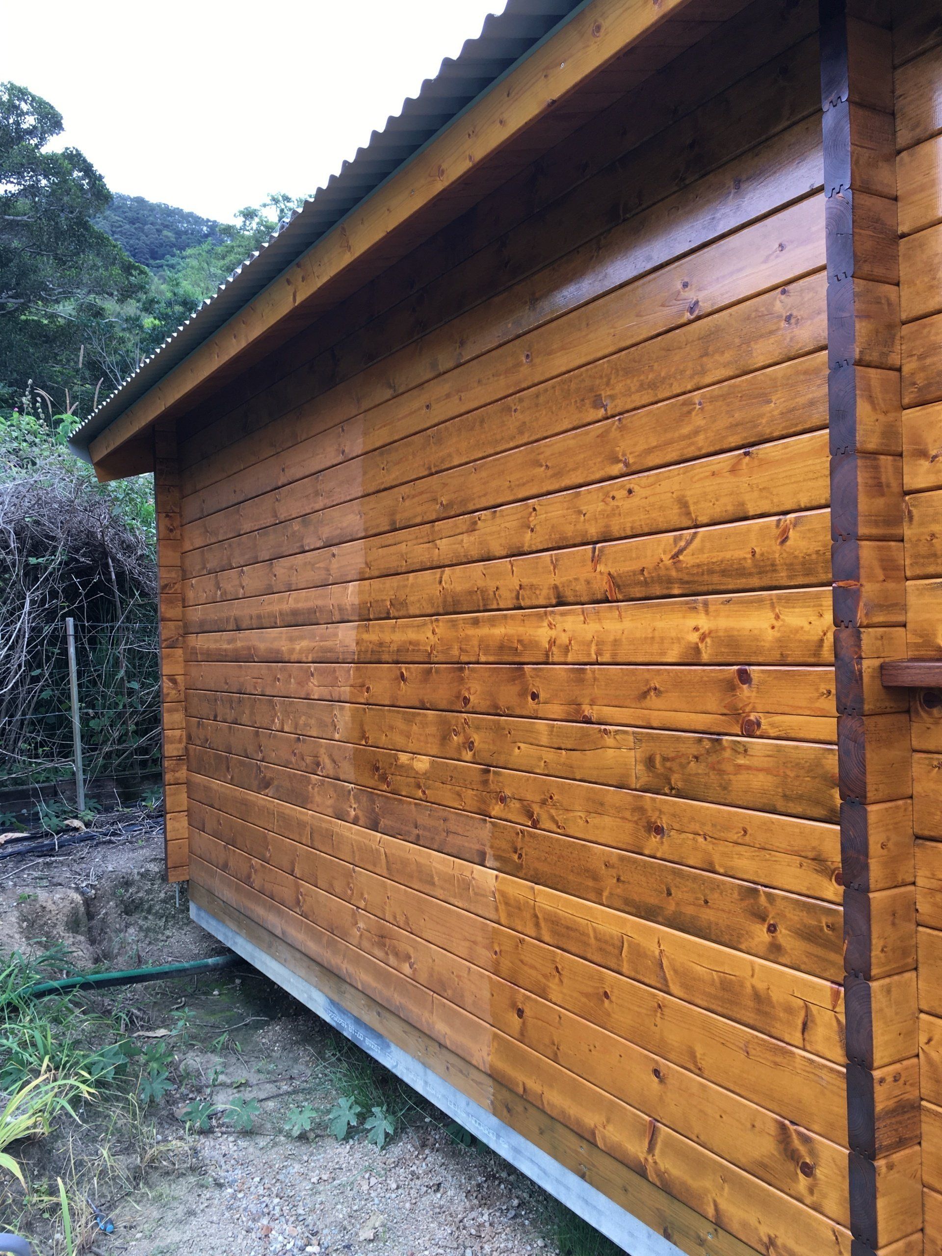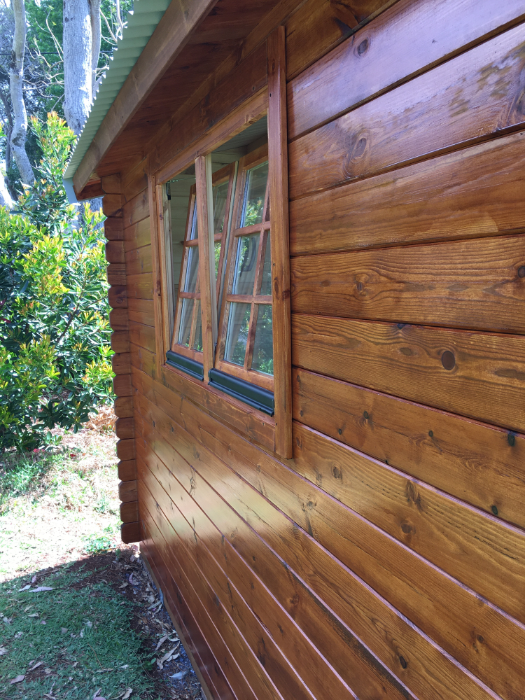 This particular cabin was oiled using CUTEK Timber Preservatives with "New Bronce" color stain.