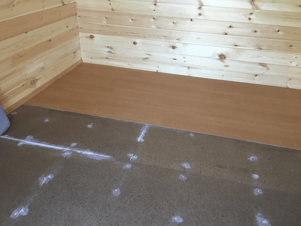 For this we first filled in the flooring screw holes to create a 100% smooth flooring surface on to which our crew then glued down the vinyl flooring.