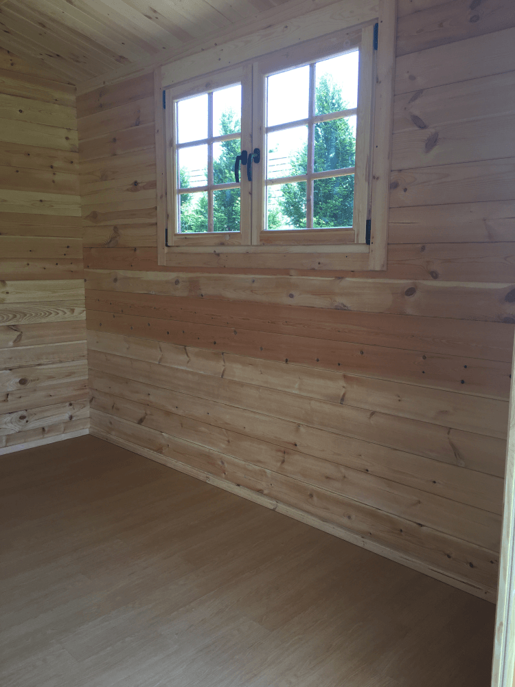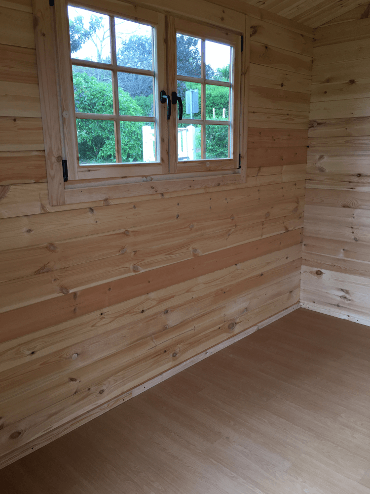 Your SAM10 comes with 19mm solid t&g roof boards and solid timber log walls, guaranteeing the authentic timber cabin look internally.