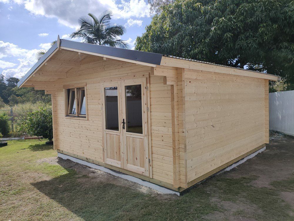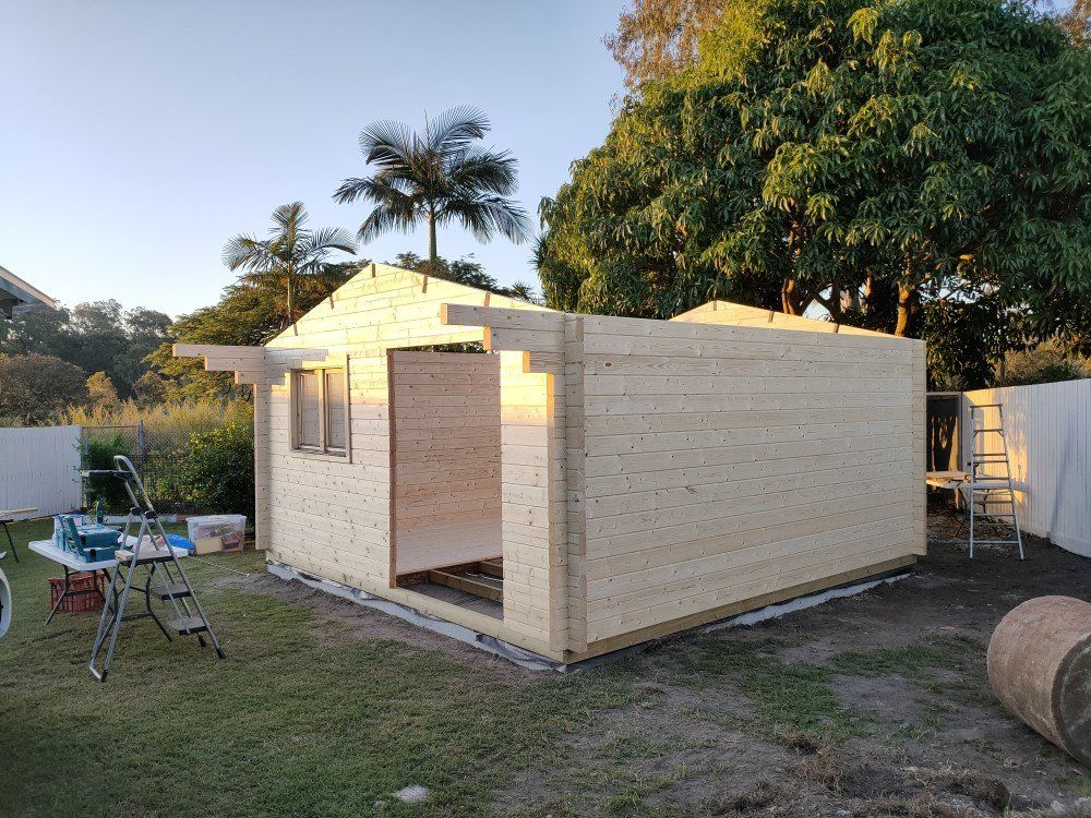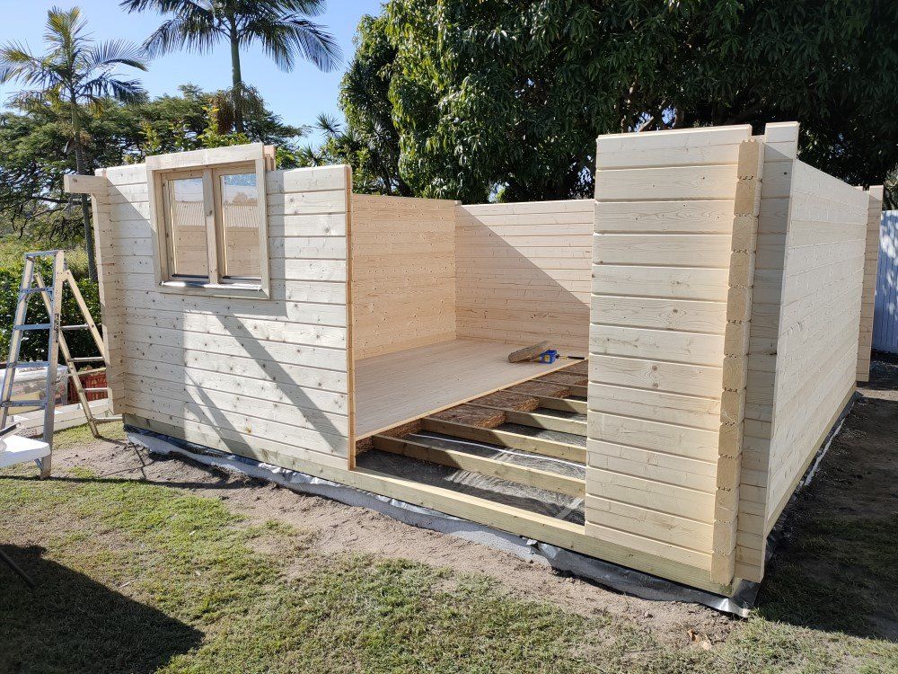 Depending on the cabin model the door frame needs to be installed either during or after the wall construction. This depends on whether the timber door sill sits on top of the floor boards or is installed via rebate in the floor boards - we are happy to advise of the correct method.