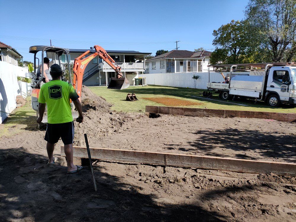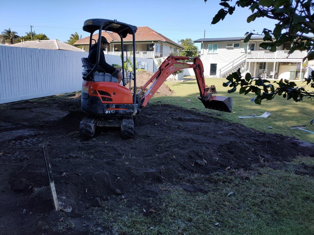 Aided by the relatively soft soil level ground, a small excavator got the grass removed and the site leveled in just a few hours.