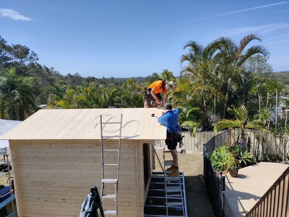 Yet another excellent use for our most popular garden shed log cabin model "SAM10" - here positioned close to the pool. The actual location within the backyard was a bit of a discussion point. As always when there is a bit of space in a suburban backyard, the 10sqm "SAM10" could be installed in several different locations. In the end the "Pool House" option won, plus a small deck out the front.