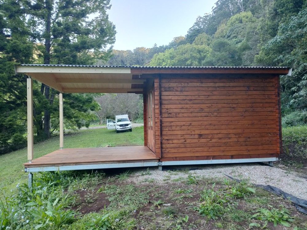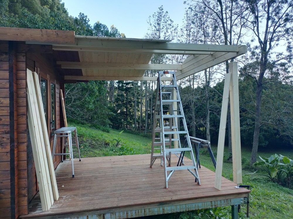 Installing the Roof Extension retrospectively meant that we had to alter the existing 700mm front roof overhang that came with the original cabin, to suit the shape of the roof beams for the veranda.