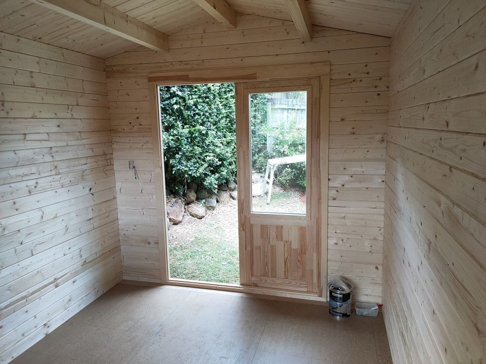 This cabin will be used as a sewing room for Louise. We will try to post images of the fully kitted out cabin once this has happened. For now the cabin awaits being stained in CUTEK "Wood Preservative" in tint "dark ash". Should look great!