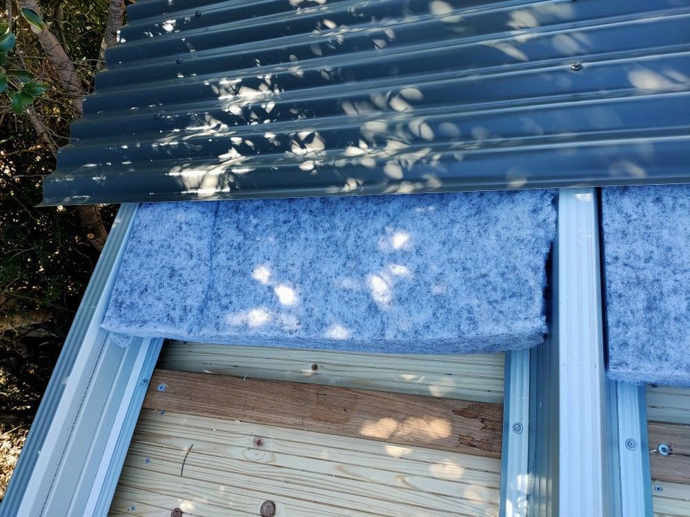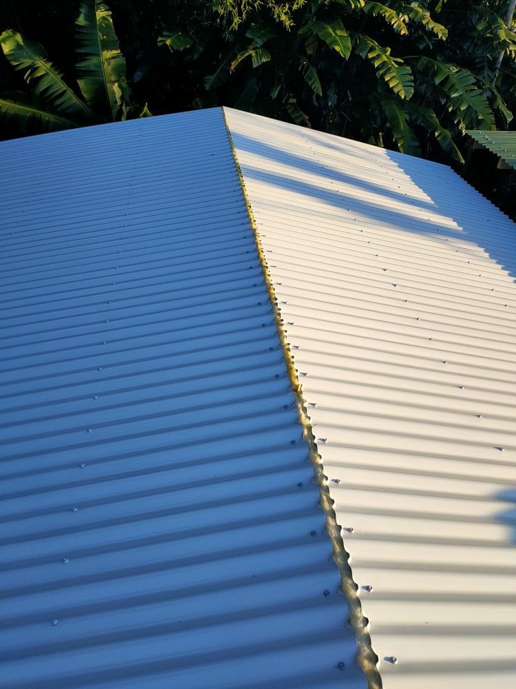 The roofing image shows the proper alignment of the roofing sheets at the top. A small gap is needed to let condensation escape.