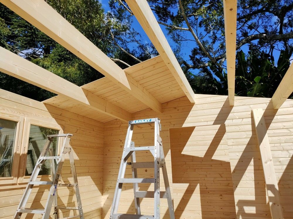 One of the exclusive features of these types of log cabins are is that ALL timber components are included. This means that when you look up inside your cabin you see t&g solid timber roof boards - and NOT the underside of corrugated iron sheets, or rolls of insulation wool or aluminium blankets. We also take the time to screw these down into the roof and wall beams to ensure adequate wind ratings (instead of using nails).