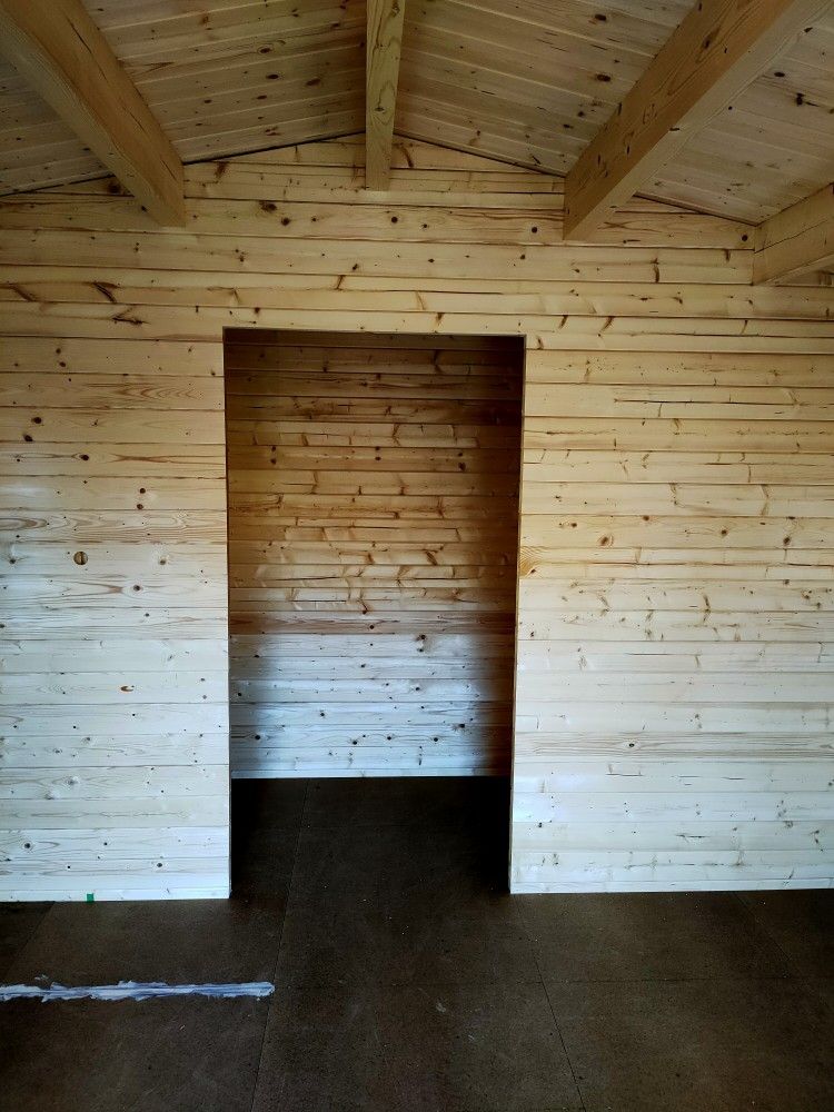 Once the roof boards are installed the cabin is 99% watertight, as the t&g timber boards lock into each other quite tightly. In case the cabin is exposed to rains you will only have a few very minor drip leaks through the inevitable branch knots in the timber.
