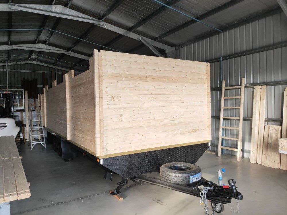 Our NEW "pet project" - we have entertained the idea of building Tiny House Log Cabins on trailers for some time, and after a lot of research and planning we designed a Tiny House Log Cabin we think you will love! We imported the first prototype late 2023, the trailer was custom made locally by "Trailers Direct" at the Gold Coast. It measures 8m x 2.5m which we feel is the ideal size for tiny house living - not too small so there is enough space for up to 4 people and not too large to avoid issues with weights when towing. The design incorporates two sleeping lofts and a separate bathroom with a sliding barn door.