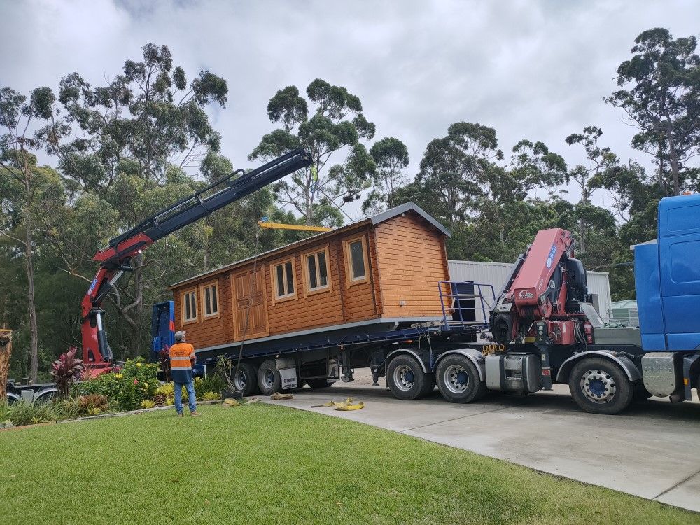 Loading up a 9m long log cabin for road transport and making sure all goes smoothly is never an easy task! Fortunately, the professional guys from GoldCoastCraneTrucks.com.au are always on their "A" game!