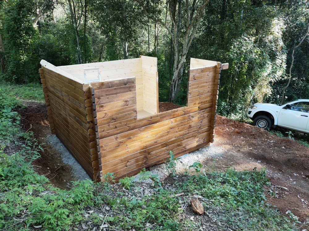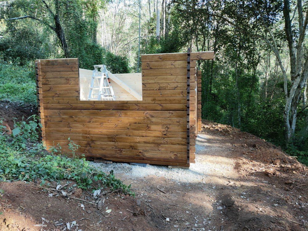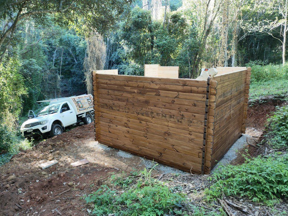 Alexa and Mitch started their log cabin journey with a hilly bush block, a stunningly beautiful property close to Brisbane, but still miles away from the hustle and bustle of any densely populated area.